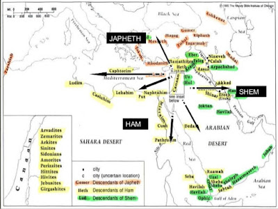 Vechii Evrei au notat în Vechiul Testament - după ce au constatat că în Vechea Lume post-diluviană contau 3 tipuri de bărbați - că mai vechii “Iafiți” / “Însemnați” și “Semiți” / “Corciți” au fost urmați de mezinii Hamiți: pe aceia mai recenți - mai tineri / mai viguroși și mai numeroși - evident cu invidie i-au blestemat ca să-și servească frații mai vârstnici (însuși întâmplarea descrisă în textul biblic ca sursa blestemării fiind semnificativă, fiii găsindu-și tatăl Noe deopotrivă beat și gol, alegoria conectând Tradiția pre-diluviană / a celor vechi cu respectul post-diluvian / al celor noi).